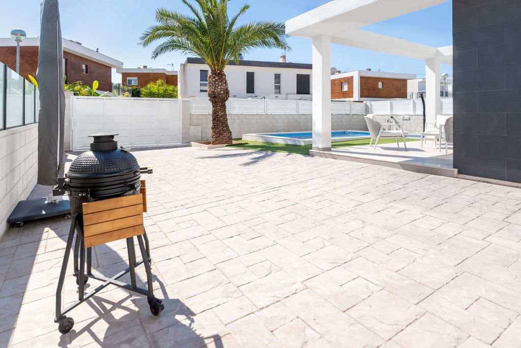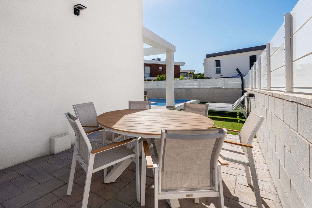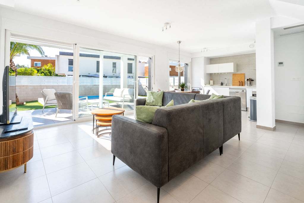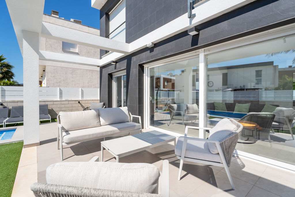 Located in the heart of Gran Alacant, just 2.5 km from the stunning Carabassi Beach. This luxurious villa, with 3 bedrooms and 3 bathrooms spread over two floors, offers a stylish and comfortable holiday experience. High-quality interior design, modern kitchen appliances, full air conditioning, and high-speed wireless internet ensure an unforgettable stay.